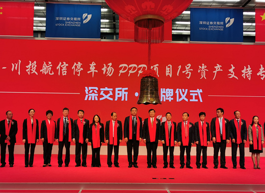 密集“敲鐘”,是今年四川國(guó)資國(guó)企加速資產(chǎn)證券化的一個(gè)有力注腳。圖為11月13日,川投集團(tuán)總規(guī)模30億元的全國(guó)首單PPP儲(chǔ)架式資產(chǎn)證券化項(xiàng)目在深交所掛牌上市